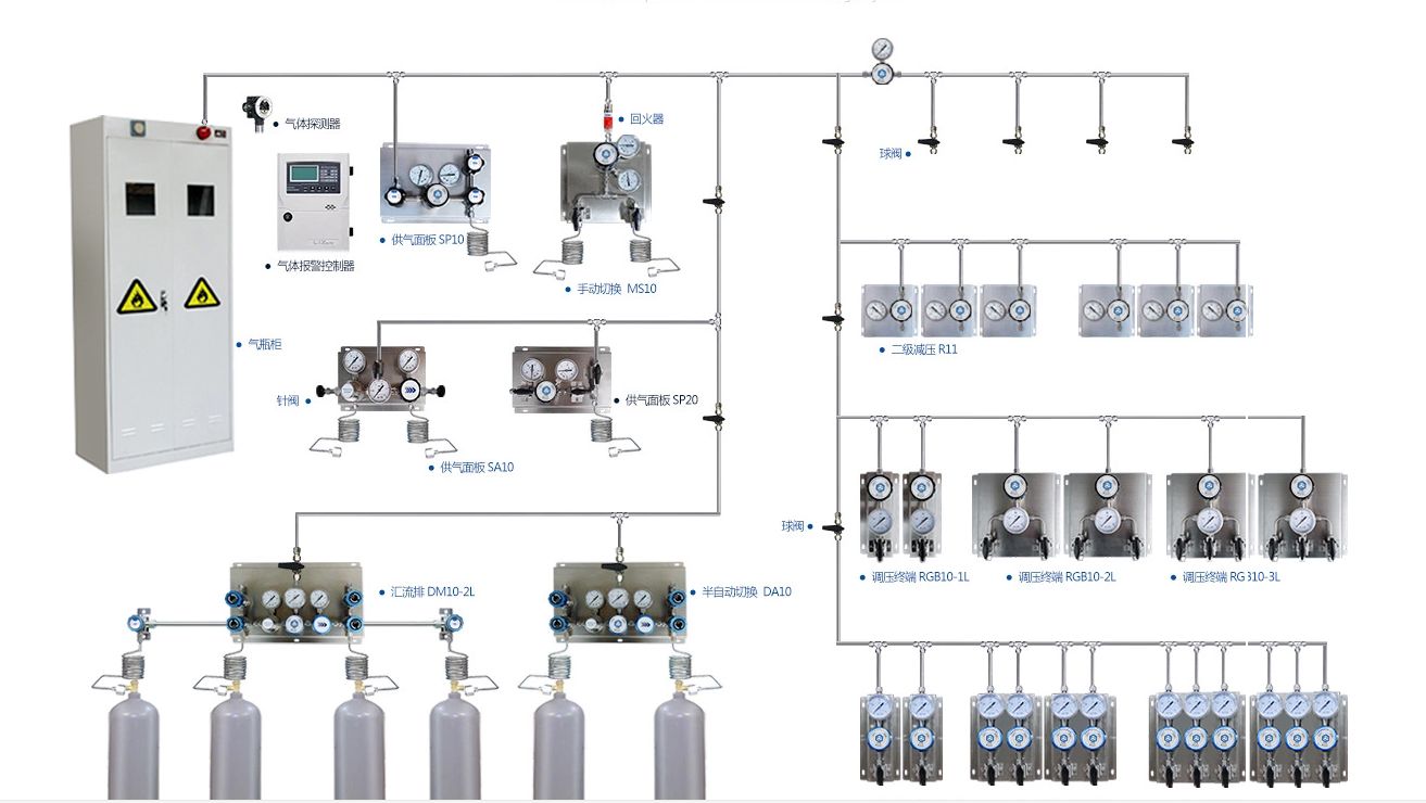 實驗室用氣根據工作要求不同,可有不同種類、不同等級的氣體,氣體等級有普通、純和高純之分。各類不同等級的氣體裝在鋼瓶中,一般都有商品供應。其中有些氣體的鋼瓶是物制的,某些少量氣體還可以在實驗室制備。
